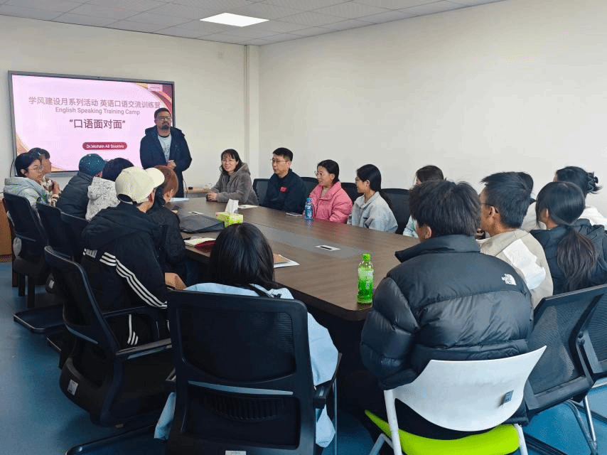 为深入落实学校关于“学风建设月”工作要求,营造勤学、善思、笃行、创新的浓厚学习氛围,2025年11月25日,湖北工程学院经济与管理学院精心策划并成功举办了“口语面对面”英语训练营活动。本次活动特邀学院外籍教师Mohsin博士担任主讲嘉宾,学院副院长刘姣华、专任教师协同参与,与学生展开沉浸式、互动式口语交流,旨在通过实践激发学习热情、提升综合应用能力,是学院推动学风建设与专业成长深度融合的一次生动实践。
