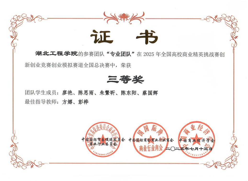 上述四项国家级奖项涵盖不同赛道和层级,全面展示了我院学子在理论指导实践、商业计划设计和市场模拟运营等方面的综合实力,是对我院教育教学改革与人才培养质量的又一次有力肯定。展望未来,经济与管理学院将在学校统一领导下,持续鼓励和支持学生参与高层次学科竞赛,为社会输送更多具有创新思维和实践能力的优秀人才,为服务地方社会经济高质量发展贡献更大的智慧与力量。