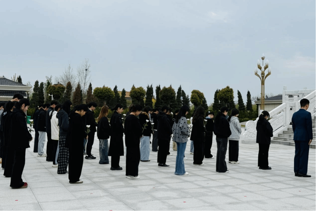 默哀结束,全体师生依次缓步走向烈士纪念碑,敬献花篮,肃立鞠躬,以庄重礼仪缅怀为国家和民族英勇献身的革命先烈。