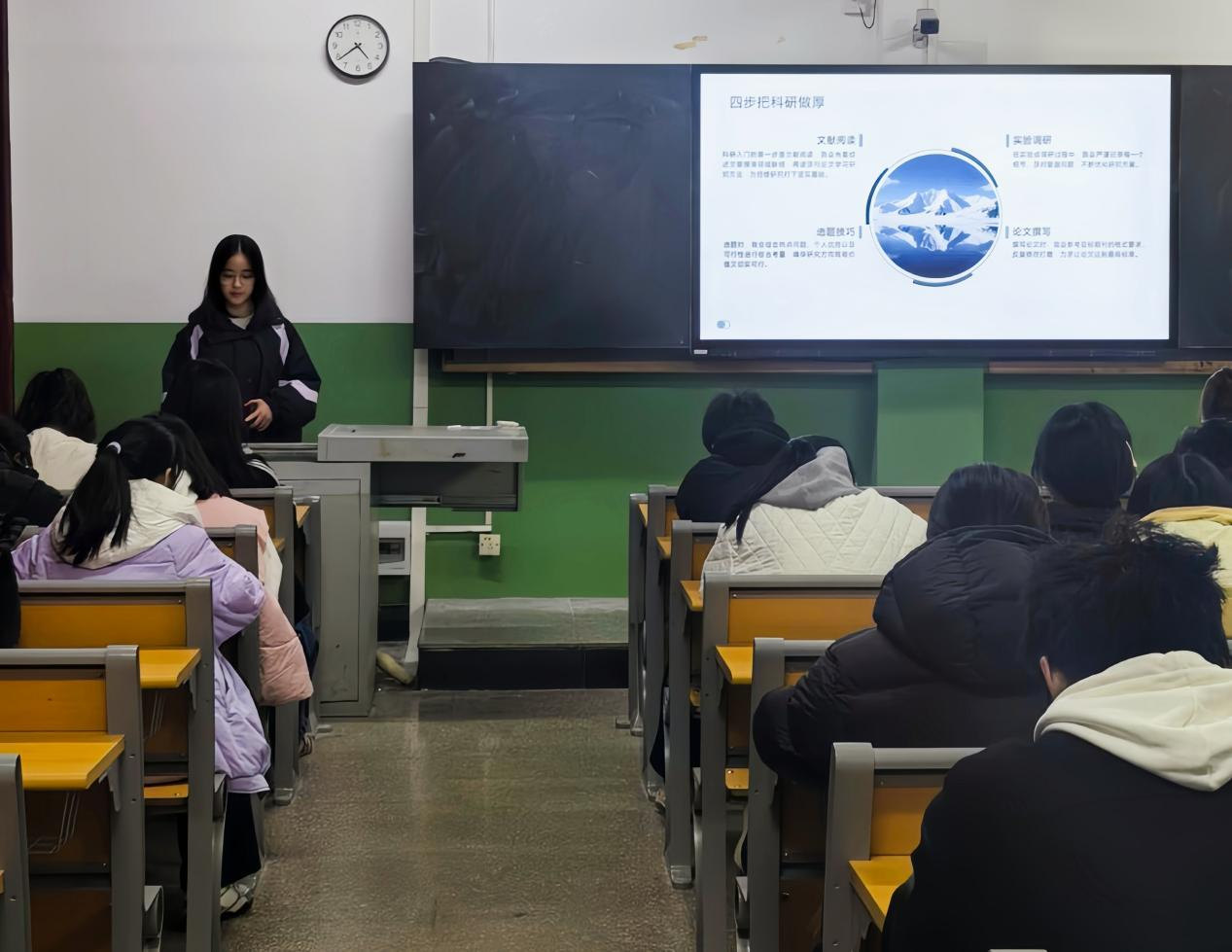 在分享交流会上,获得校级奖学金、国家奖学金和国家励志奖学金的学长学姐们去到各自专业的新生班级,分享自己的学习心得和体会。他们结合自身成长轨迹,从学科知识攻坚、学习效率提升、竞赛能力培养,到长远发展规划等多个方面倾囊相授,用鲜活的经历为新生拨开迷雾,指明方向。
