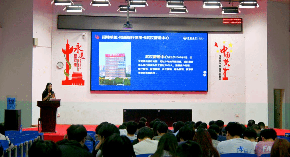 9月21日,招商银行信用卡武汉营运中心专场宣讲会在经法楼报告厅举行。负责人通过宣传片和PPT展示,系统介绍了客户助理岗位的职责要求、薪酬待遇及晋升机制。宣讲结束后,不少学生表达了入职意向,展现出对招聘岗位的浓厚兴趣。